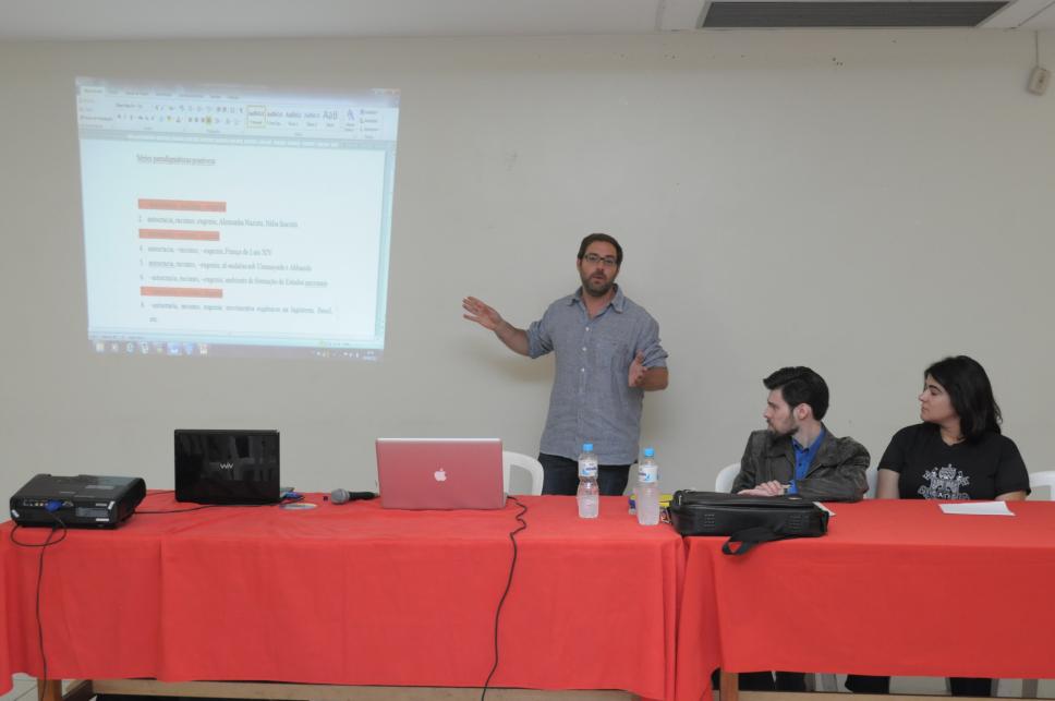 Da esq. p/ dir.: prof. Marcello Sorrentino, prof. Wagner Pereira (UFRJ) e mediadora.