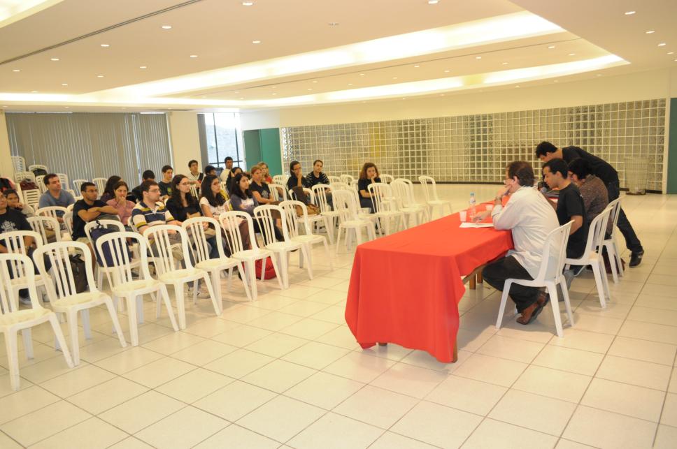 Na mesa da esq. p/ dir.: 1º - prof. Luís Reznik