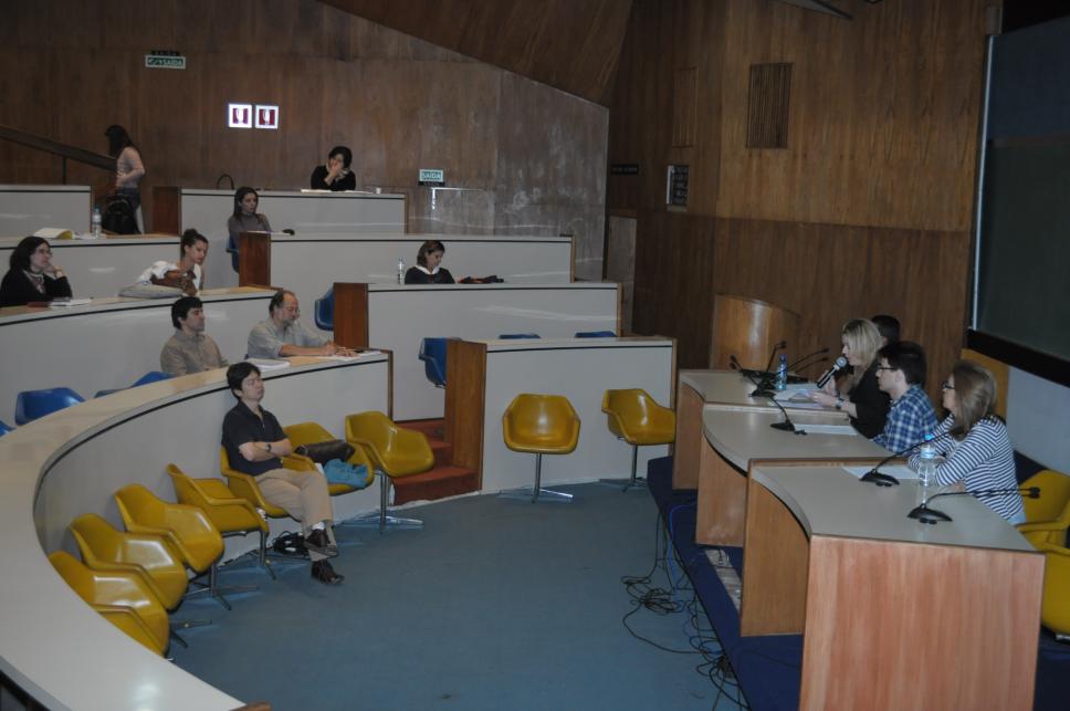 Na plateia na primeira fila: prof. João Masao Kamita; na segunda fila da esq. p/ dir.: prof. Leonardo Pereira e o prof. Marco Antônio Pamplona.