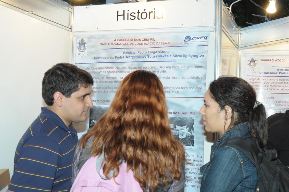 O bolsista de iniciação científica do Núcleo de Memória da PUC-Rio, Pedro Fraga, apresentação seu poster.