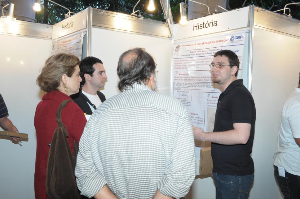 Da esq. para dir.: profa. Lorelai Kury (COC/Fiocruz); ao fundo, o prof. Romulo Costa Mattos (HIS); de costas, o prof. Marco Antônio Pamplona (HIS); aluno Helio Mauricio Pirajá Cannone (Núcleo de Memória, HIS)