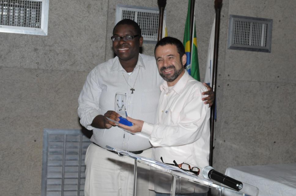 Professor Sidnei Paciornik com bolsista premiado no XX Seminário de Iniciação Científica da PUC-Rio.