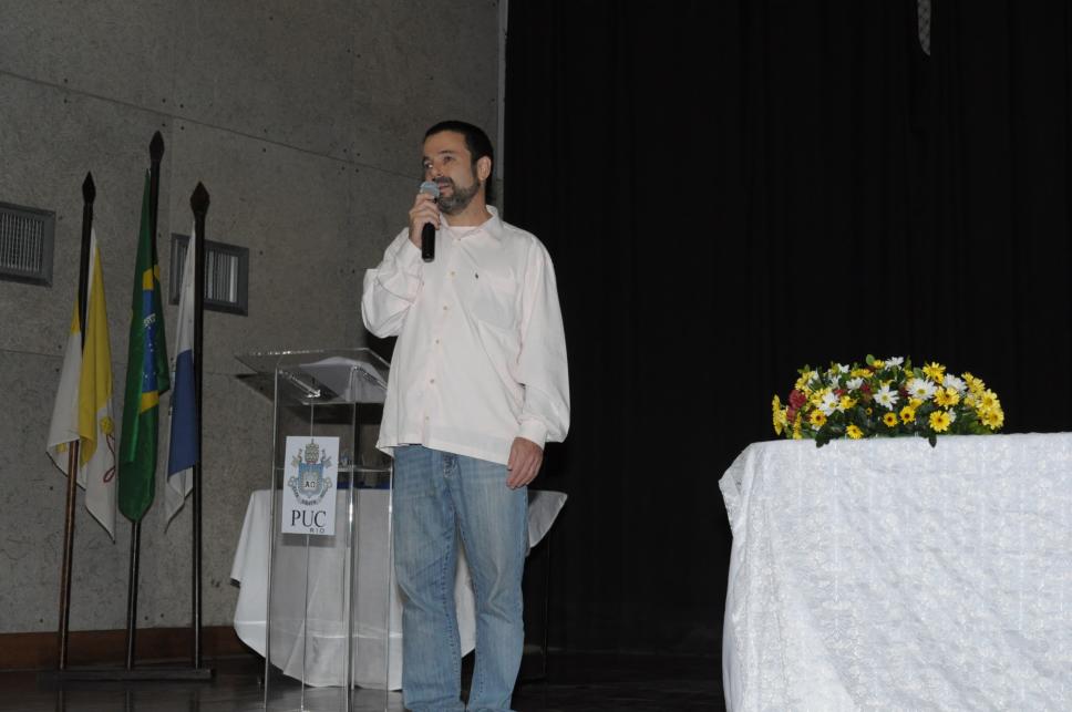 Professor Sidnei Paciornik discursa na cerimônia de encerramento do XX Seminário de Iniciação Científica da PUC-Rio.