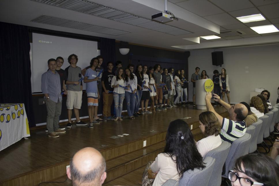 Alunos do PUC Por Um Semestre com os certificados de participação.