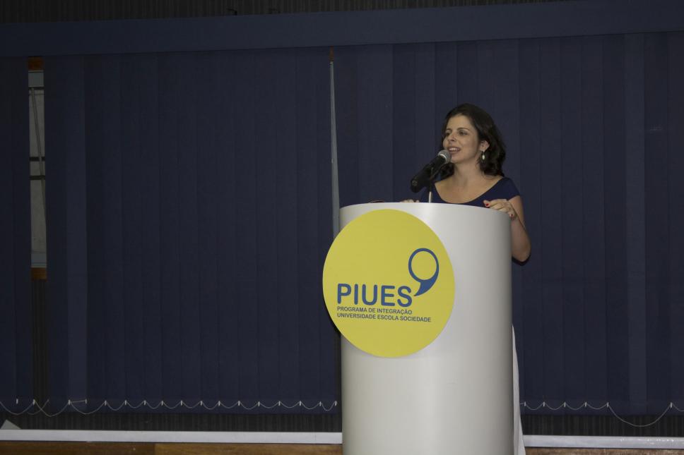 Professora Jakeline Prata de Assis discursa na cerimônia de encerramento.