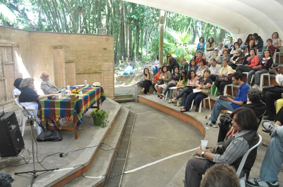 Benjamin, Beija Eu', encontro de reflexão sobre a obra de Walter Benjamin, com a participação da profa. Eliana Yunes, do Departamento de Letras, e os contadores de história Francisco Gregório Filho e Benita Prieto. Fez parte do evento 'Operação Leitura'.
