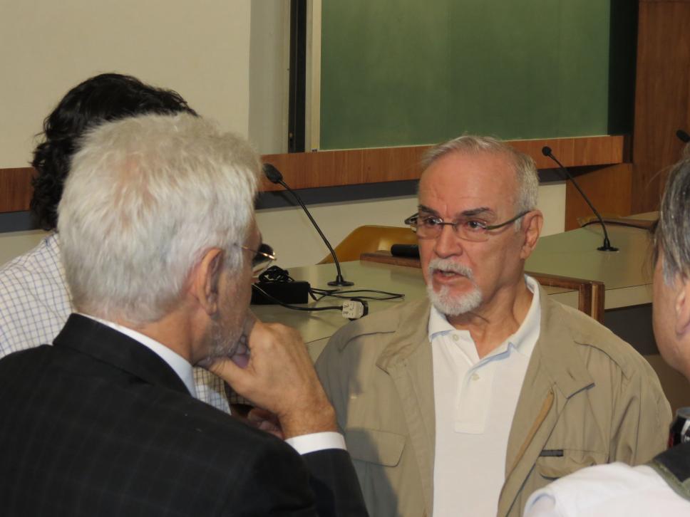 Pré-palestra. Conversa informal entre palestrantes e mediador da mesa.