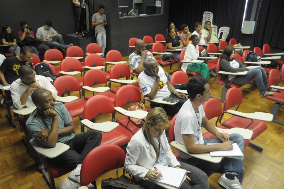 Encontros de Carnaval', evento realizado na sala 102-K do Edifício Kennedy, com a participação de Hélio Ricardo Rainho, do projeto SRZD, Roberto Almeida, vice-presidente administrativo da São Clemente e Raquel Valença, blogueira do projeto SRZD.