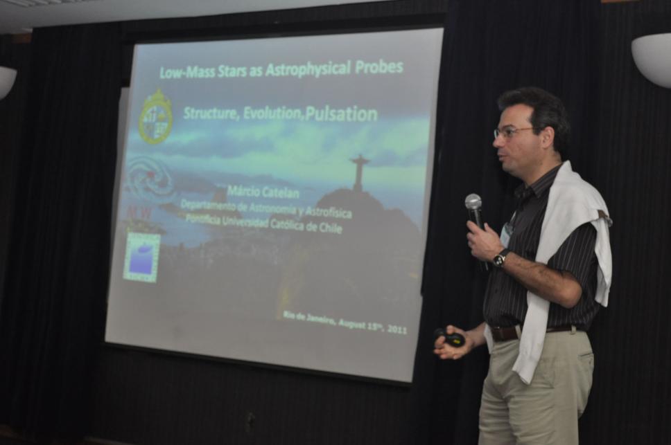 Doutor em astronomia Marcio Catelan em sua palestra duranto o workshop.