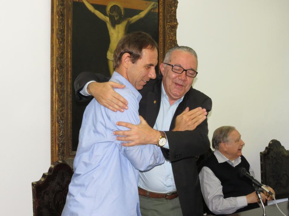 Pe. Josafá e Prof. Marcos Vinicius em cumprimento no pós-cerimônia.