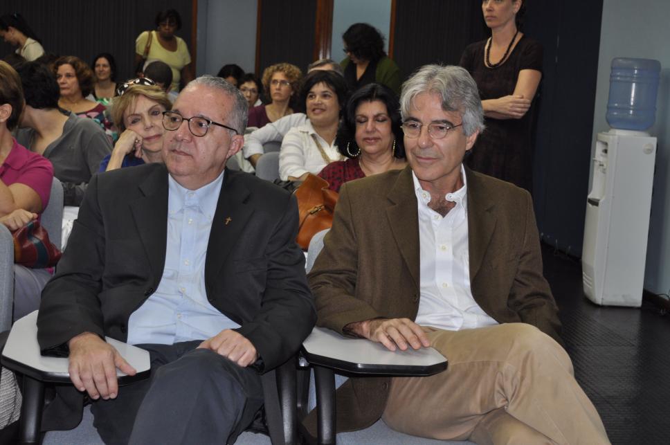 O vice-reitor da PUC-Rio, pe. Josafá e o vice-reitor para assuntos acadêmicos, prof. José Ricardo Bergmann, durante aula inaugural.