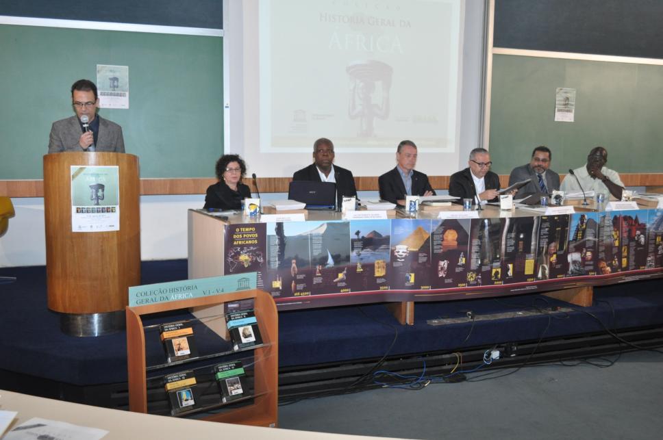 Valter Roberto Silvério (UFSCAR), Vincent Defourny (UNESCO), pe. Josafá Carlos de Siqueira, S.J., Antônio Mário Ferreira (MEC), Edson Santos de Souza