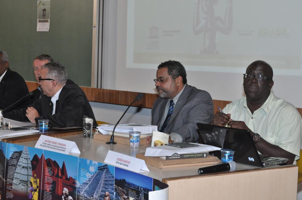 Vincent Defourny (UNESCO), pe. Josafá Carlos de Siqueira, S.J., Antônio Mário Ferreira (MEC), Edson Santos de Souza