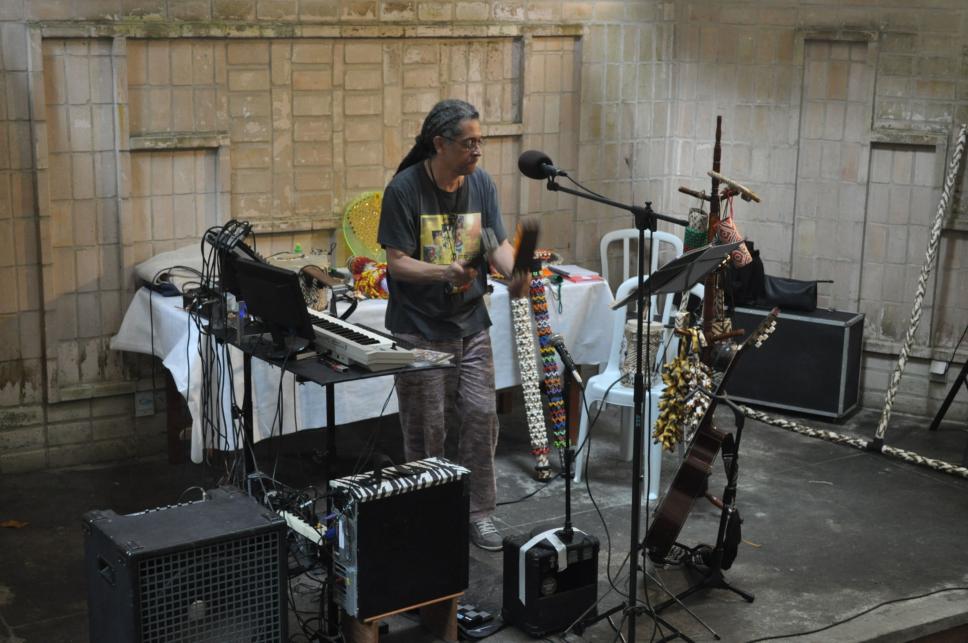 Apresentação musical de Raul de Barros durante o intervalo do lançamento da coleção.