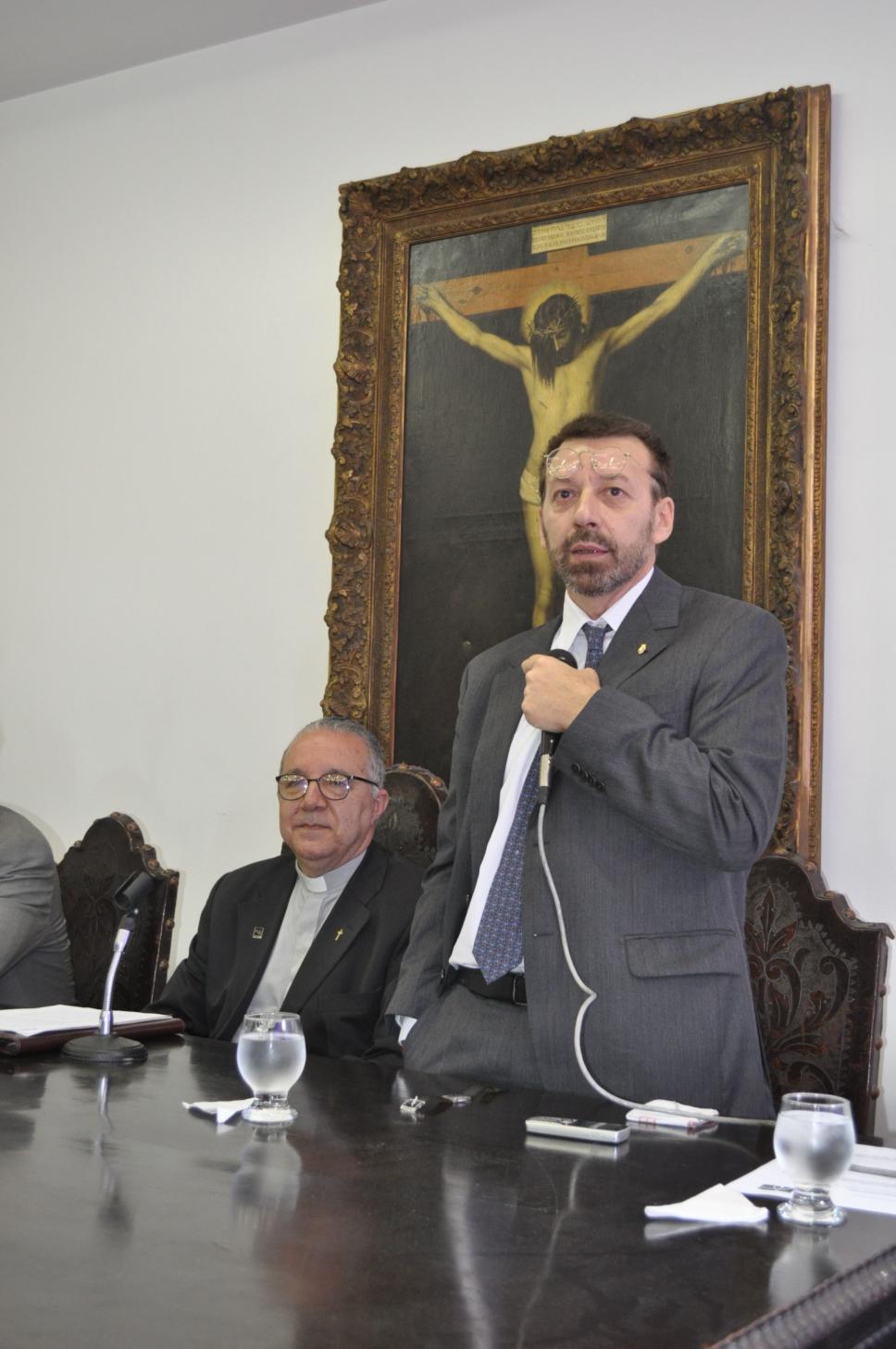 Prof. Adriano Pilatti durante sua fala na cerimônia de posse.
