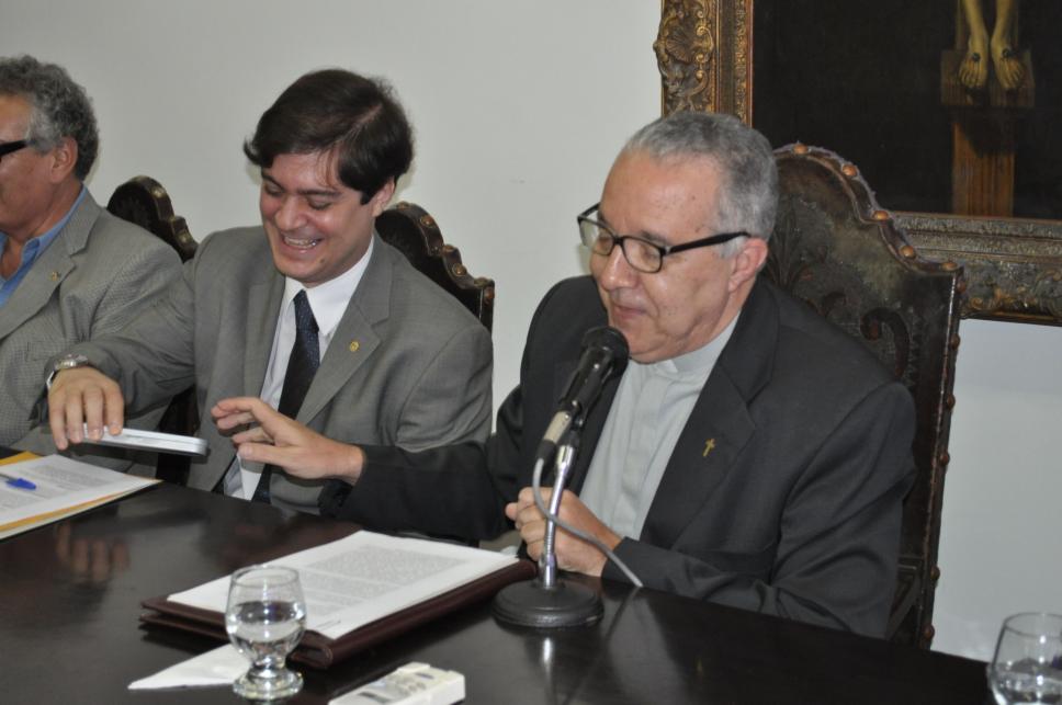 O pe. Josafá, reitor da PUC-Rio, em sua fala durante a cerimônia de posse do prof. Francisco Guimaraens como diretor do Departamento de Direito.