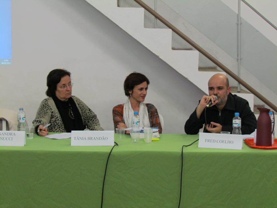 Fred Coelho, da companhia Asdrúbal Trouxe o Trombone, fala durante o debate.