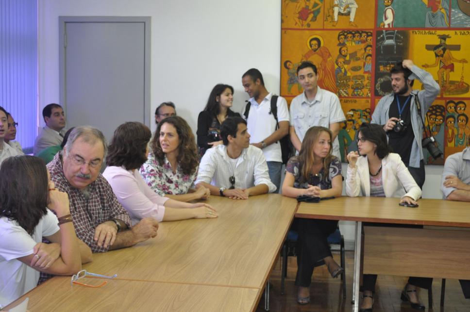 Conversa informal entre presentes antes do início da cerimônia de posse.