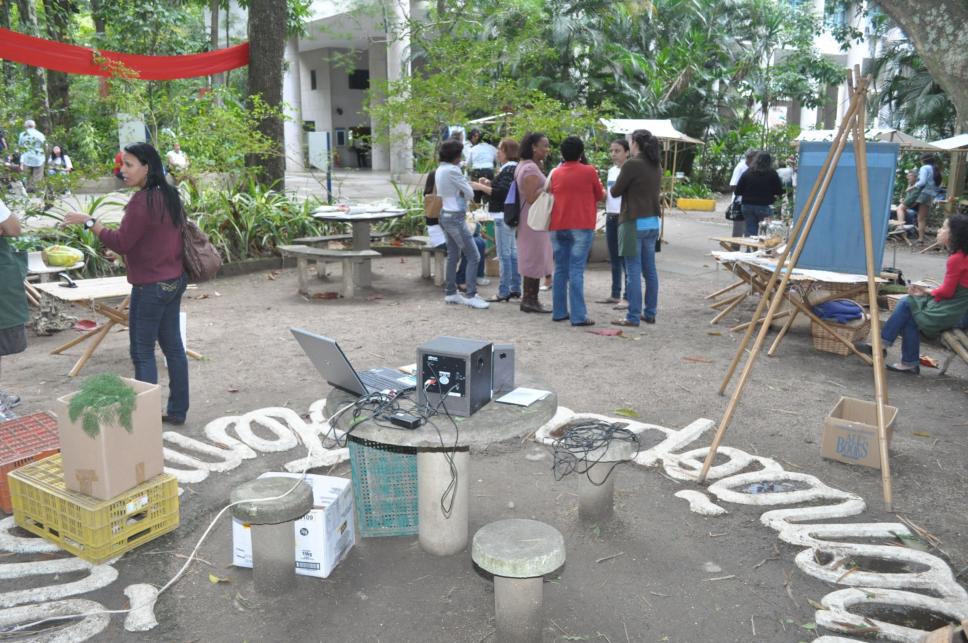 O decorrer da Feira. Estudantes de escolas municipais e pessoas de fora da PUC-Rio visitam a feira.