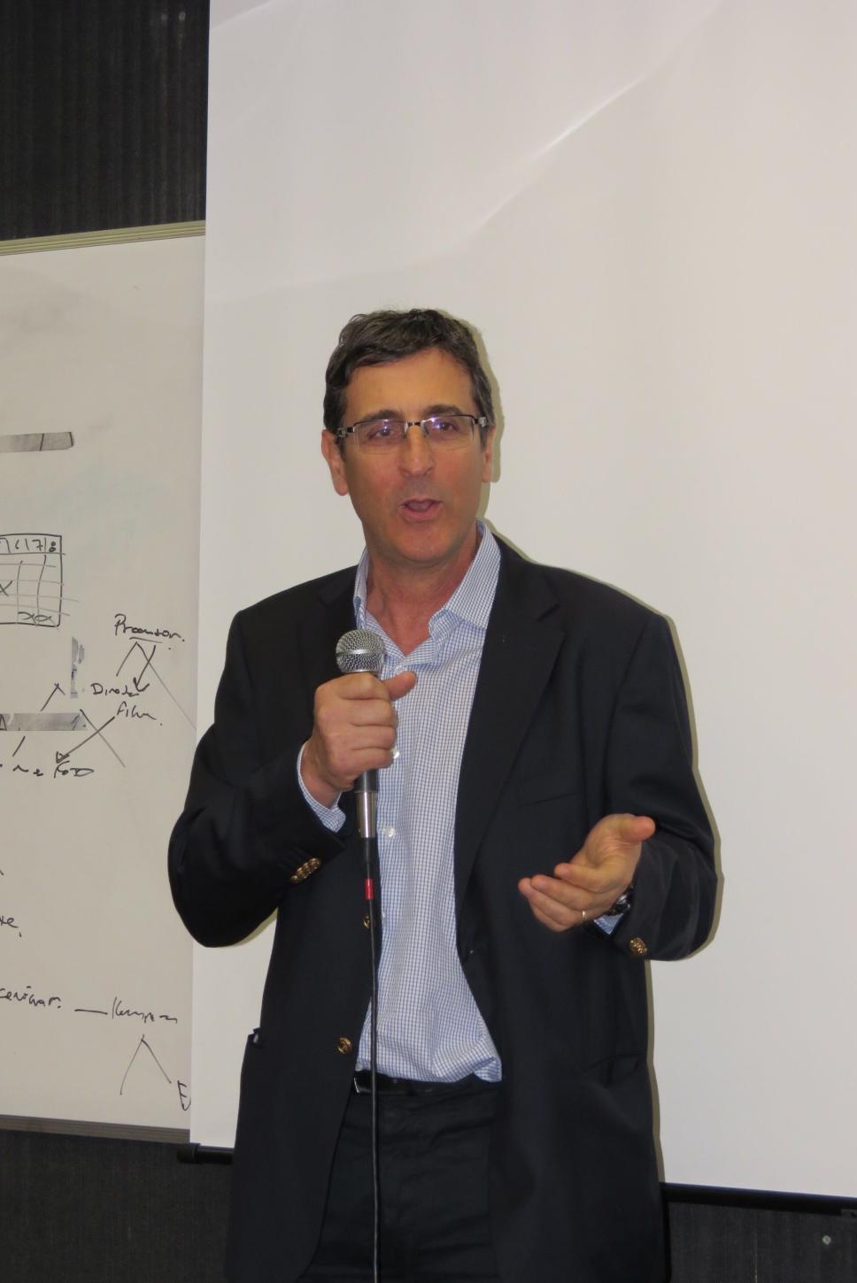 Prof. David Rubem Azulay, então diretor da Escola Médica de Pós-Graduação, fala durante cerimônia de lançamento da VII Semana de Saúde.