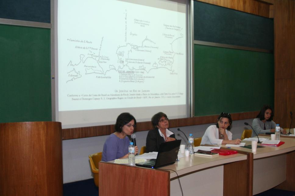 A Professora Eunícia Fernandes em uma das mesas redondas do seminário 'A Companhia de Jesus na América', promovido pelo Departamento de História.