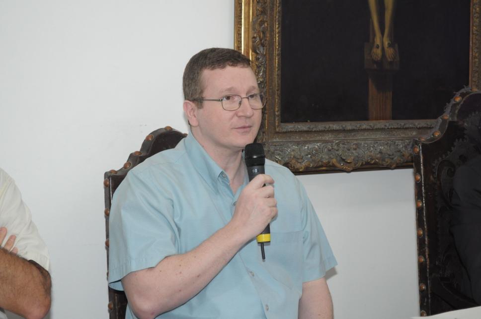 O Professor Welles Antonio Martinez Morgado fala durante sua posse como diretor do Departamento de Física da PUC-Rio.