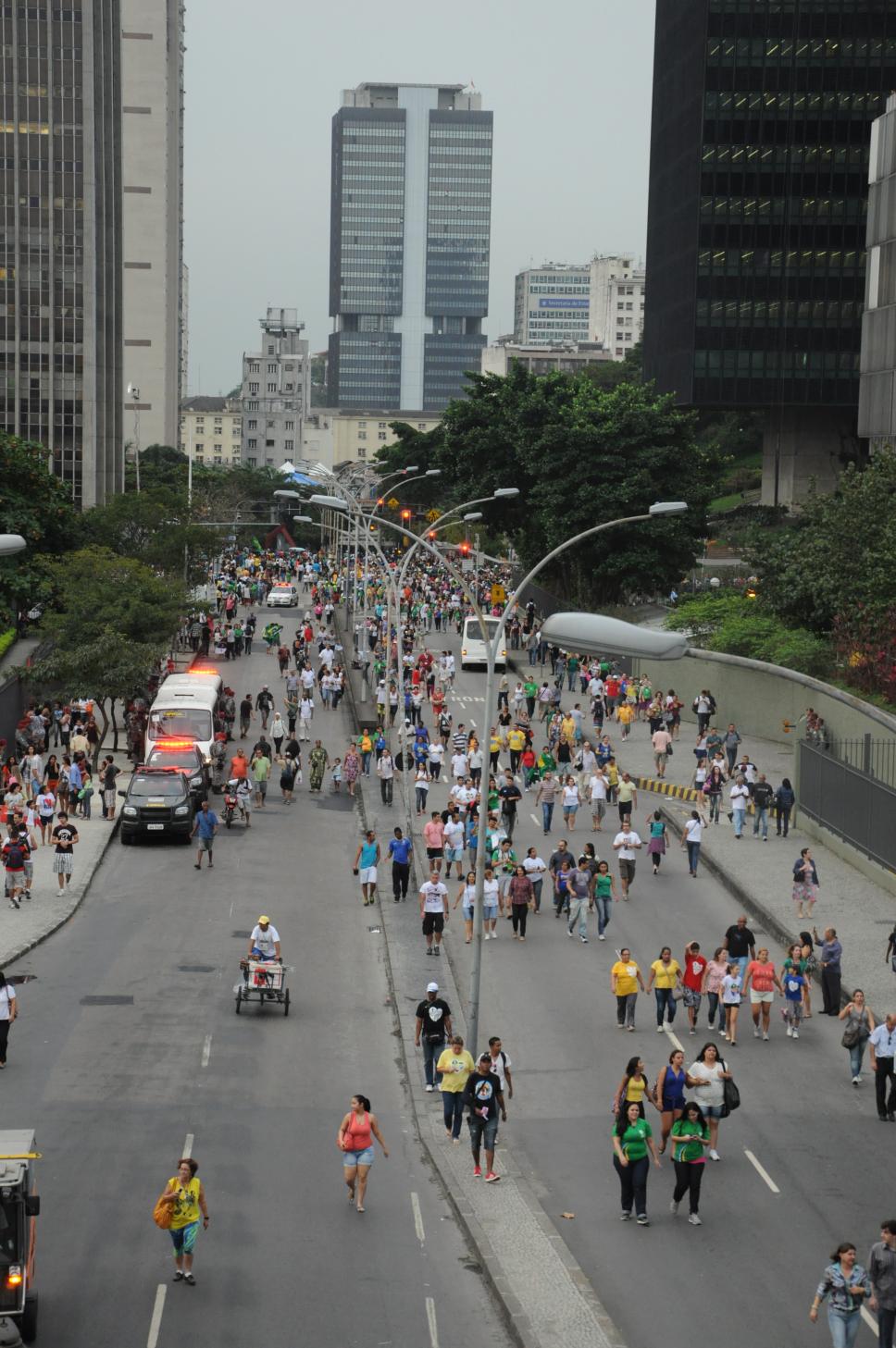 Movimentação de peregrinos nas ruas do Centro do Rio de Janeiro para a chegada do Papa Francisco.