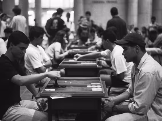 Campeonato de gamão organizado pelo Diretório Central dos Estudantes (DCE) da PUC-Rio.