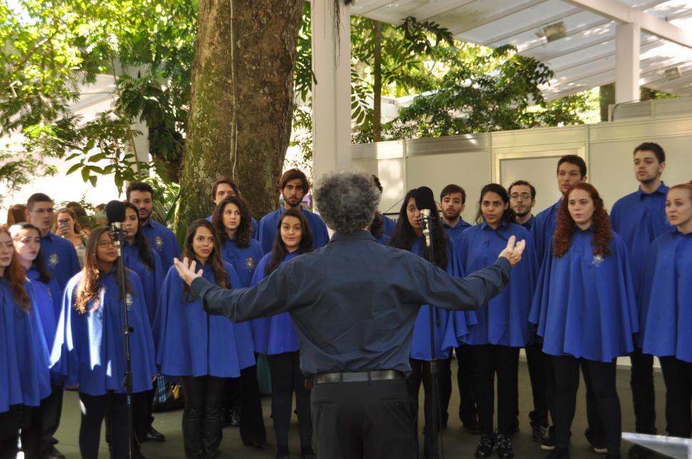 Cerimônia de abertura da XVIII Mostra PUC com a presença do Coral da PUC-Rio.