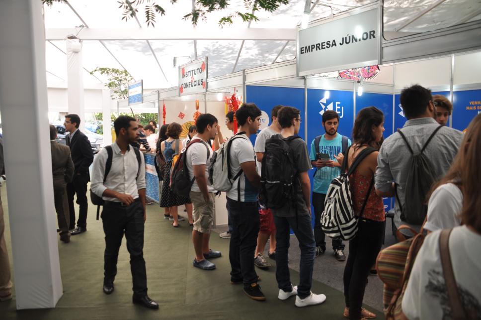 Estandes da XVIII Mostra PUC. Panorama e geral da feira e seus estandes com Empresa Junior e Instituto Confucius.