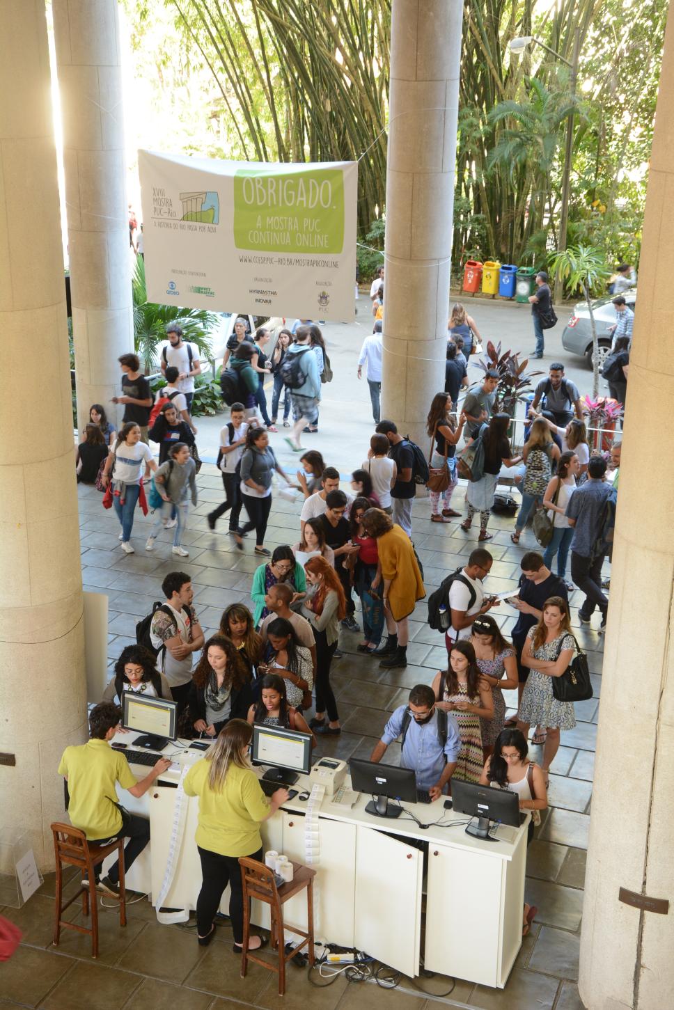 Estandes da XVIII Mostra PUC. Check-in cadastro dos estudantes.