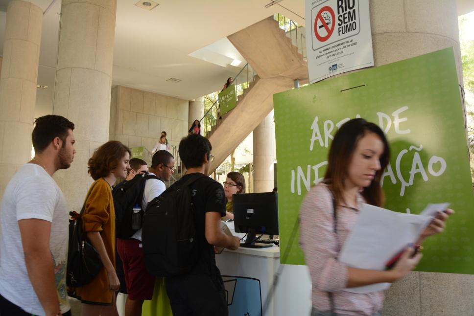 Estandes da XVIII Mostra PUC. Check-in e cadastro de estudantes.