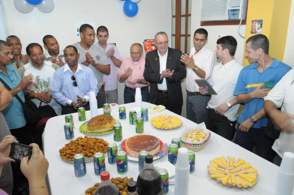 Da esq. para dir.: 9º - prof. Renato Callado Ferreira (CEF), 10º - prof. Augusto Luiz Duarte Lopes Sampaio (COM, Vice-Reitor para Assuntos Comunitários), 11º - prof. pe. Josafá Carlos de Siqueira S.J. (GEO, Reitor), e 12º Luiz Claudio Ferreira Belfort (Presidente da AFPUC)