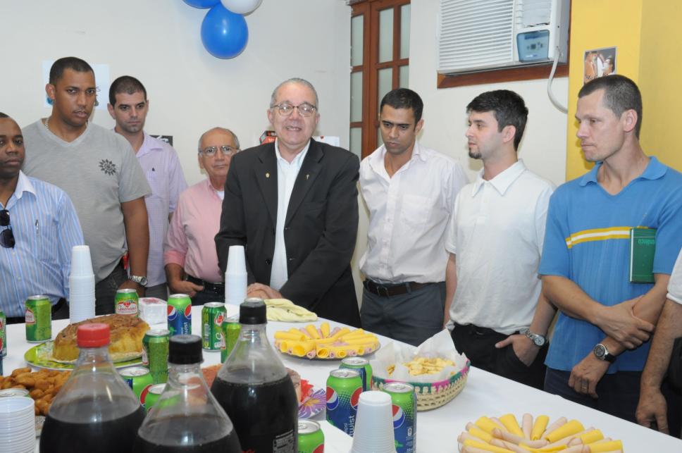 Da esq. para dir.: n.i., n.i., Max Barbosa da Cruz Silva (Conselho Deliberativo da AFPUC), prof. Renato Callado Ferreira (CEF), prof. Augusto Luiz Duarte Lopes Sampaio (COM, Vice-Reitor para Assuntos Comunitários), prof. pe. Josafá Carlos de Siqueira S.J. (GEO, Reitor), Luiz Claudio Ferreira Belfort (Presidente da AFPUC), n.i., n.i.