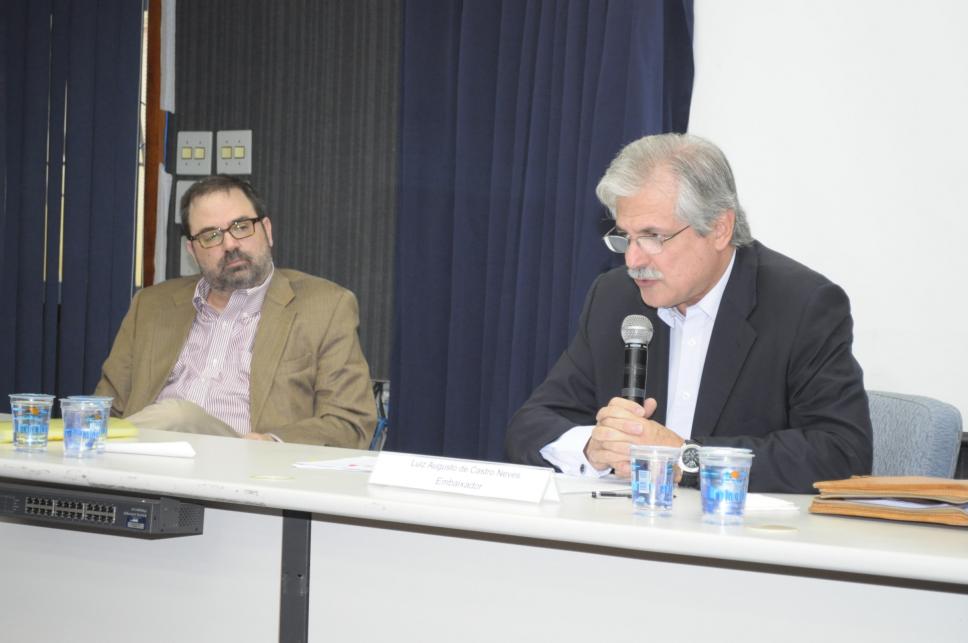 Da esquerda para direita: prof. João Franklin Abelardo Pontes Nogueira, Luiz Augusto de Castro Neves (embaixador e presidente do Conselho Curador do Centro Brasileiro de Relações Internacionais (CEBRI))