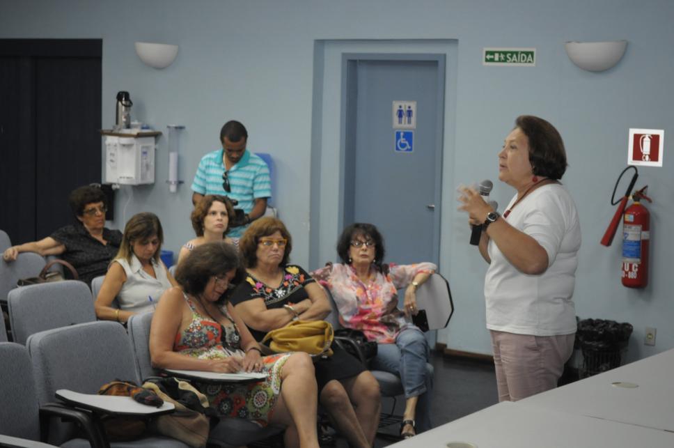 Aula inaugural do Departamento de Educação, com Wanda Engel, em 26/03/2012. Na plateia, as professoras Vera Candau (EDU), Ana Waleska, Zena Eisenberg (EDU), Isabel Lelis (EDU) e Tânia Dauster (EDU). Fotógrafo Antônio Albuquerque.