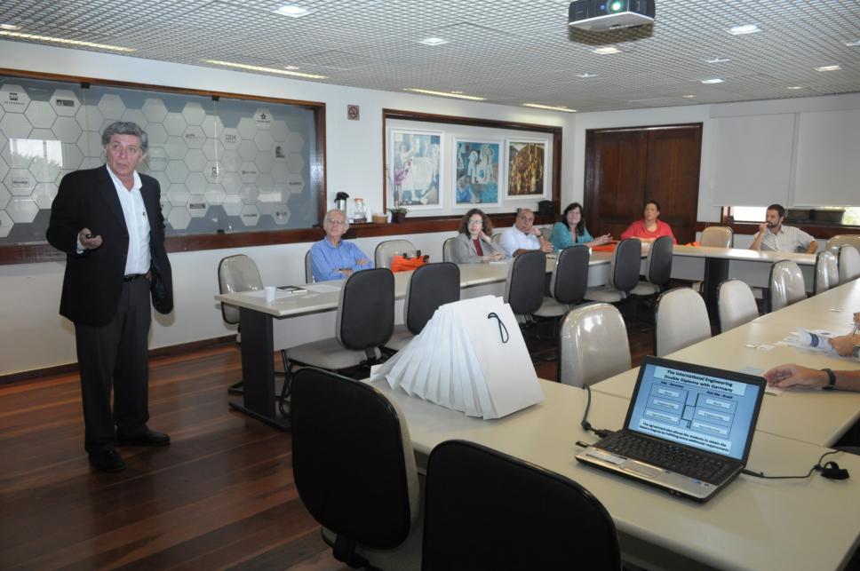 1º à esq.: prof. Nélio Domingues Pizzolato (IND); no fundo: prof. Sidnei Paciornik (DEMA)