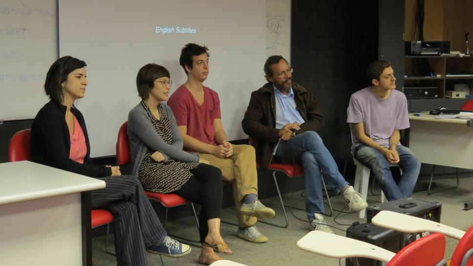 Da esquerda para direita: Aline Portugal, Julia De Simone, Marcelo Grabowsky e o prof. Hernani Heffner.