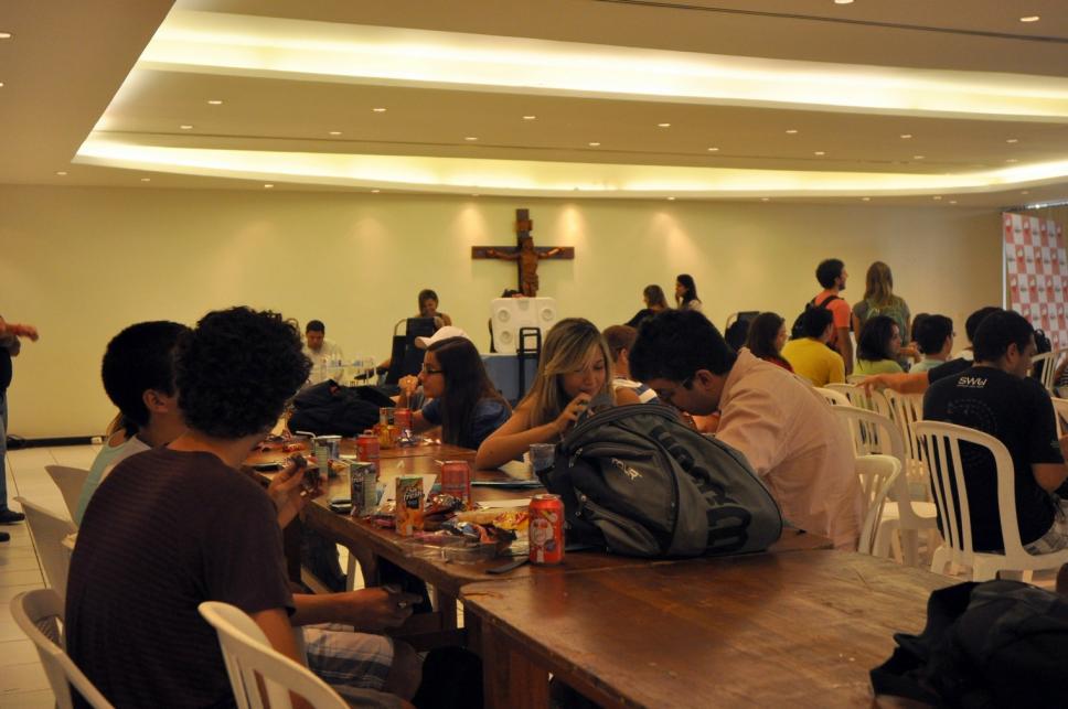 De camisa verde sentada na frente: Bárbara Macedo (ex-aluna do IRI); ao lado de camisa azul e óculos: Rodrigo Menezes (aluno de IRI)