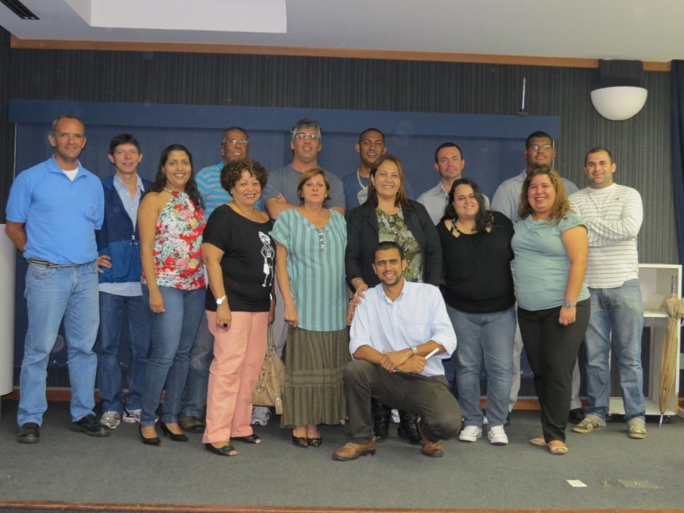 Da esquerda par direita: José Patrício de Lima (Conselho Deliberativo), Hugo Furtado de Mesquita (1º Tesoureiro), Fernanda Basílio (2ª Secretária), Vera Lucia Madalena de Lira (Assessora), de blazer preto, Zenaide Olivetti (Conselho Deliberativo), Bruna Meneses (2ª Tesoureira), Adriana Ginu da Silva (1ª Secretária). De camisa cinza na fileira de trás: Edmir Firmino da Costa Junior (Vice-presidente AFPUC), Max Robson da Cruz (Conselho Deliberativo), Maurício Oliveira Veras (Conselho Fiscal), Luiz Carlos da Silva (Conselho Fiscal), Vanilson Rocha de Araújo (Conselho Fiscal)