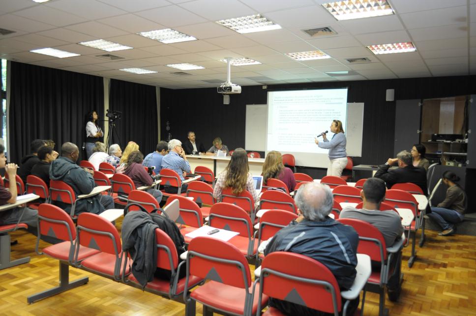 Palestrantes na mesa: n.i., profa. Adriana Ribeiro Rice Geisler (JUR), profa. Denise Pini Rosalem da Fonseca (SER)