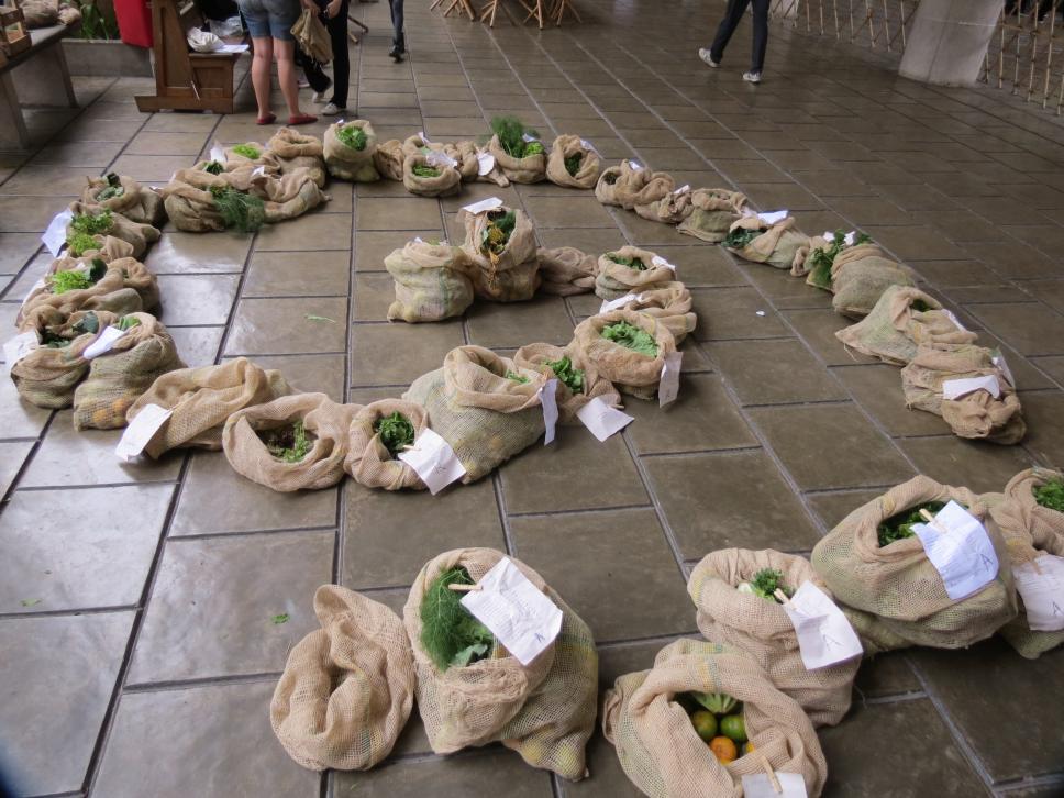 Alimentos cultivados pelos alunos expostos nos pilotis.