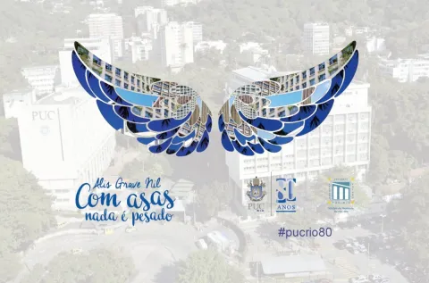Publique suas fotos com as asas no Instagram e no Facebook e utilize a hashtag #pucrio80