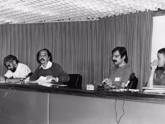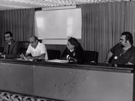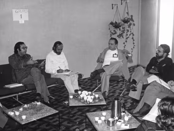 Reunião de professores do grupo 1 de debate no Seminário Interno do Centro de Ciências Sociais, evento coordenado pela Vice-reitoria de Desenvolvimento para debater a função da pesquisa, as fontes de financiamento, a relação ensino-pesquisa, entre outros assuntos.
