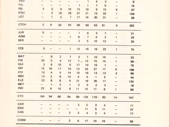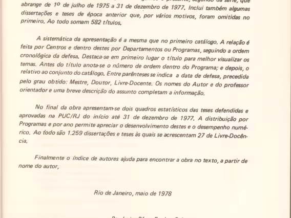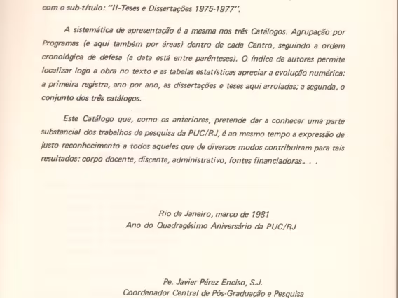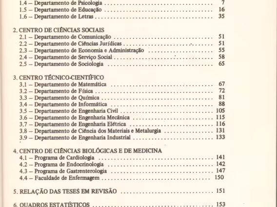 Sumário de A Pós-Graduação na PUC-RJ VII - Teses e Dissertações 1978-1980, dividido por programas de pós-graduação de cada centro acadêmico.
