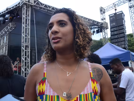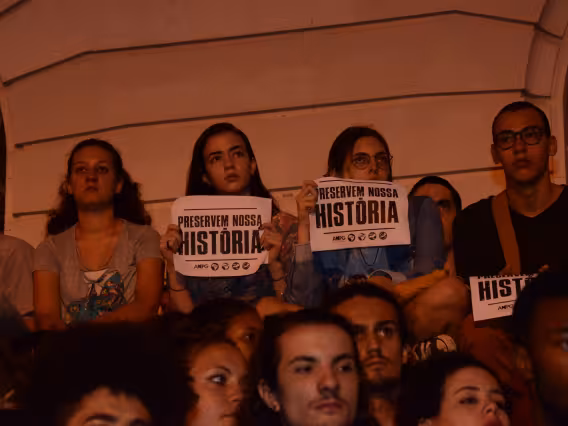 Manifestantes atentos ao ato pelo incêndio do Museu Nacional do Rio de Janeiro.
