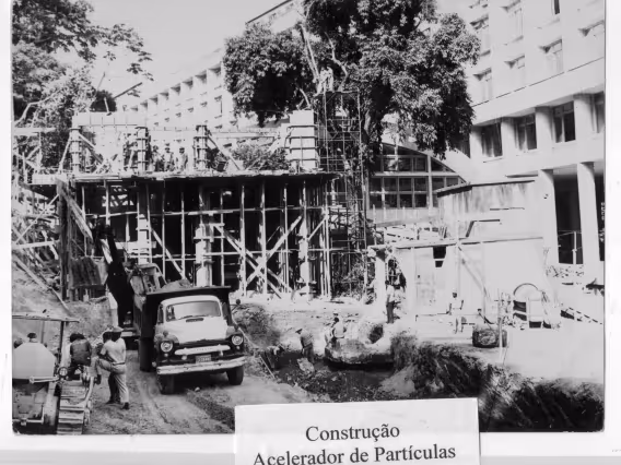 Desbaste do morro para a construção do prédio para a instalação do acelerador Van de Graaff.