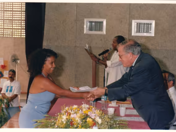 Entrega de diplomas no antigo ginásio, em evento organizado pelo prof. Carmelo. Relacionado ao projeto Pré-Tec Comunitário.