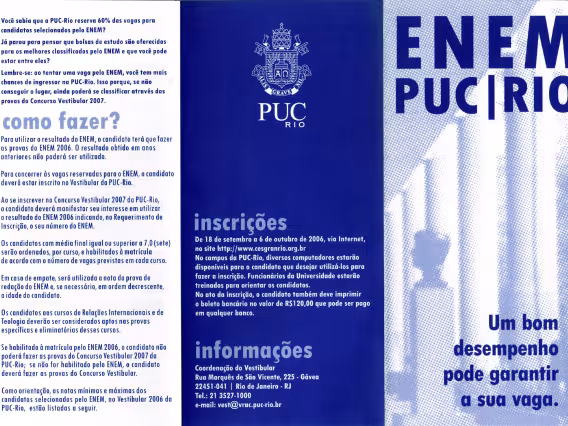 Primeiro colocado no vestibular para o curso de Economia da PUC-Rio.