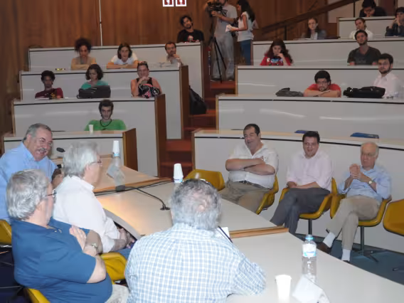 Abertura da exposição PUC-Rio 70 anos. Solenidade com o Reitor Prof. Pe. Josafá Carlos de Siqueira S.J. e a Profa. Margarida de Souza Neves, em frente ao Solar Grandjean de Montigny. O Prof. Benzaquen está logo atrás da Profa. Margarida.
